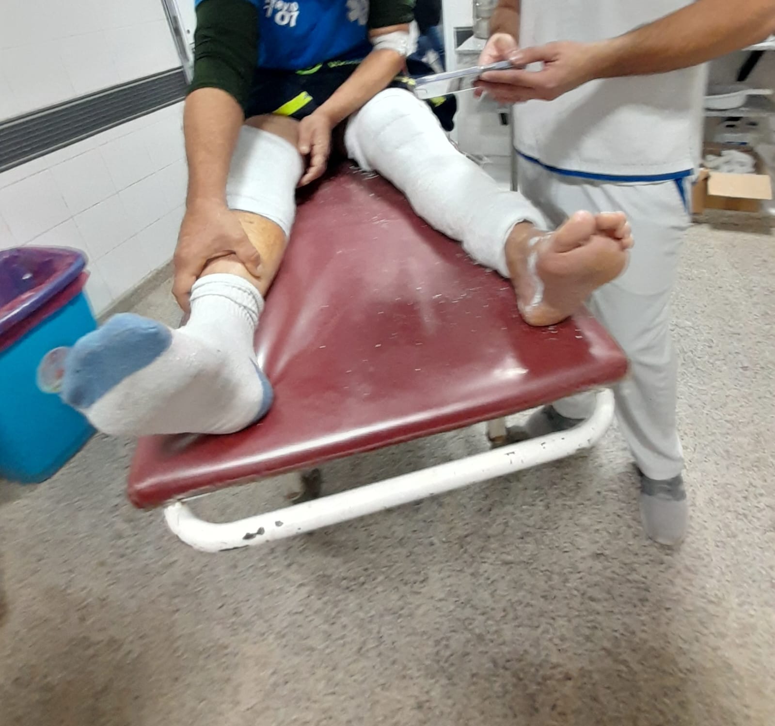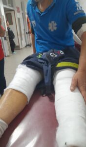 El chofer de la ambulancia resultó lesionado en una de sus piernas presentado fractura de rotula en la rodilla izquierda dado que el paciente tomó un palo y se abalanzó sobre el mismo