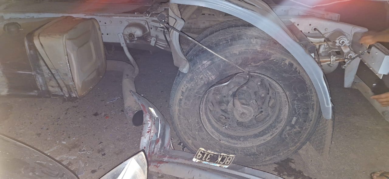 Al llegar al lugar, los agentes constataron que uno de los vehículos involucrados era un camión Scania H360, dominio HSE-xxx, con acoplado BFG-xxx, conducido por Anastacio A., de 51 años, domiciliado en la ciudad de Reconquista, Santa Fe. Según su testimonio, el camión se encontraba estacionado sobre la banquina, en sentido descendente, cuando sintió un impacto en el lateral derecho.