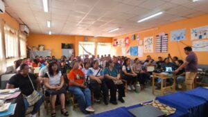 Durante el encuentro se presentaron contenidos tecnológicos en lengua wichí, a cargo de Joaquín Ballena, y experiencias de docentes interculturales bilingües sobre prácticas en aulas iniciales y primarias, con énfasis en la producción de materiales didácticos propios de la comunidad.