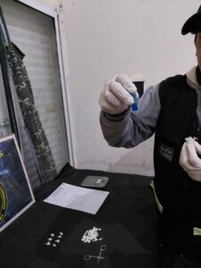 El allanamiento se realizó con la presencia del ayudante fiscal Facundo Rivera y contó con la colaboración de la División Química Legal, a cargo del Crio. Walter Kees, y del Cuerpo de Operaciones Motorizadas (COM), bajo la responsabilidad del Sgto. Martín Romero.