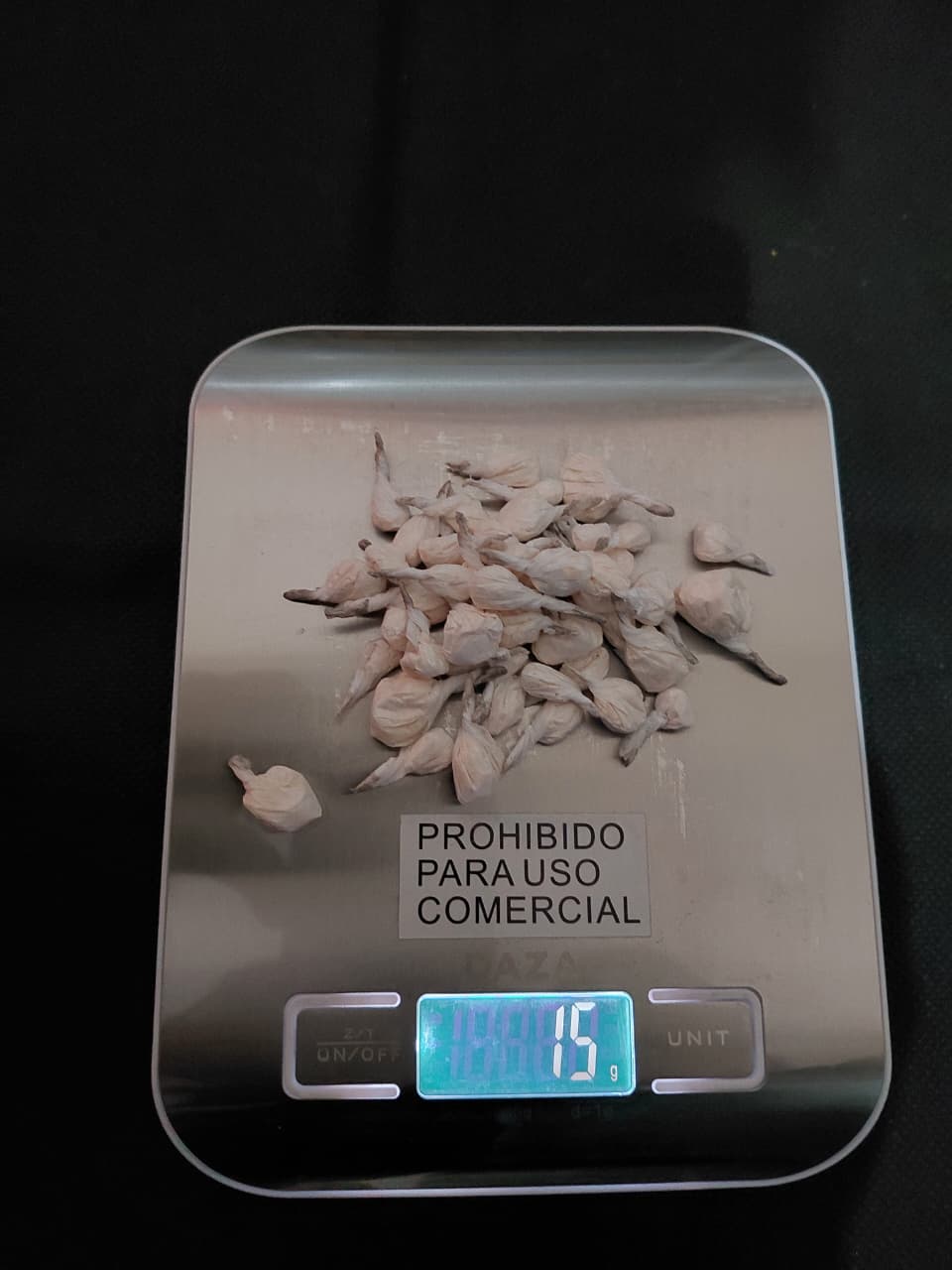 52 envoltorios tipo bochitas con un total de 15 gramos de cocaína.