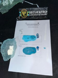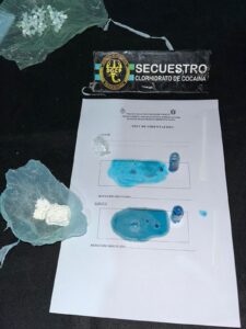 31 envoltorios de polietileno con una sustancia blanquecina. La prueba de campo arrojó resultado positivo para cocaína, con un peso total de 5,2 gramos.