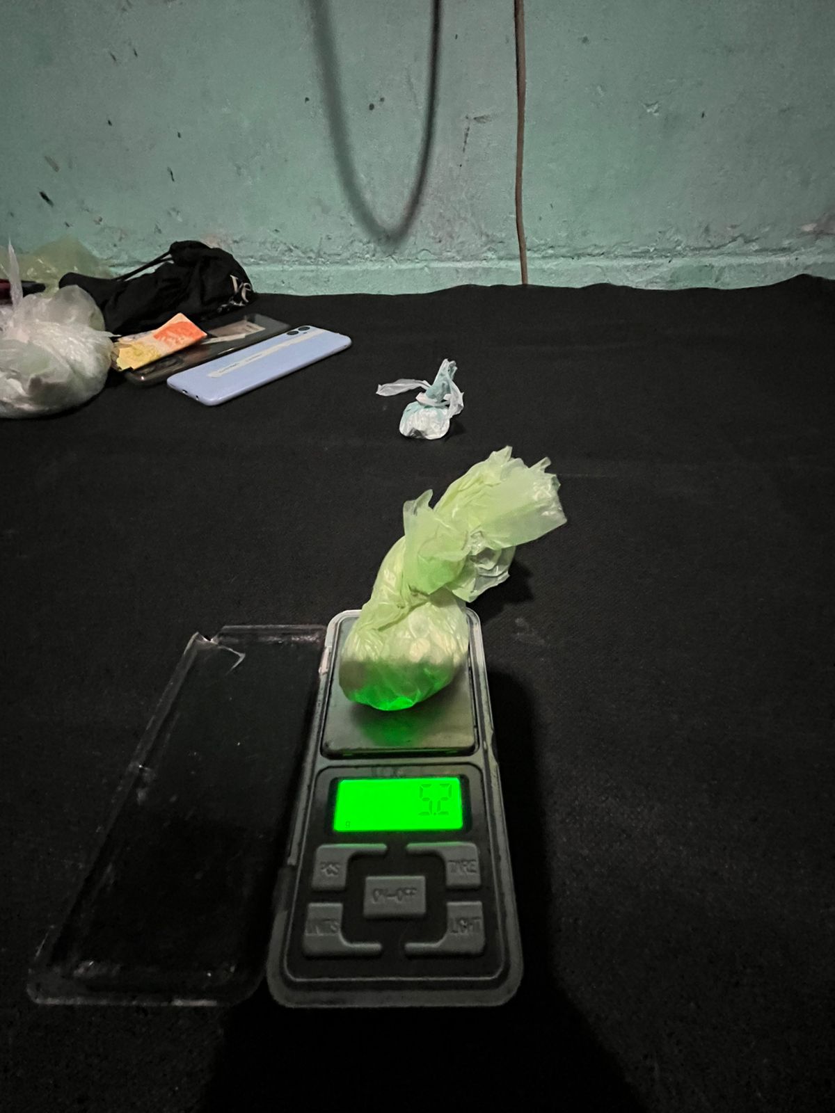 31 envoltorios de polietileno con una sustancia blanquecina. La prueba de campo arrojó resultado positivo para cocaína, con un peso total de 5,2 gramos.