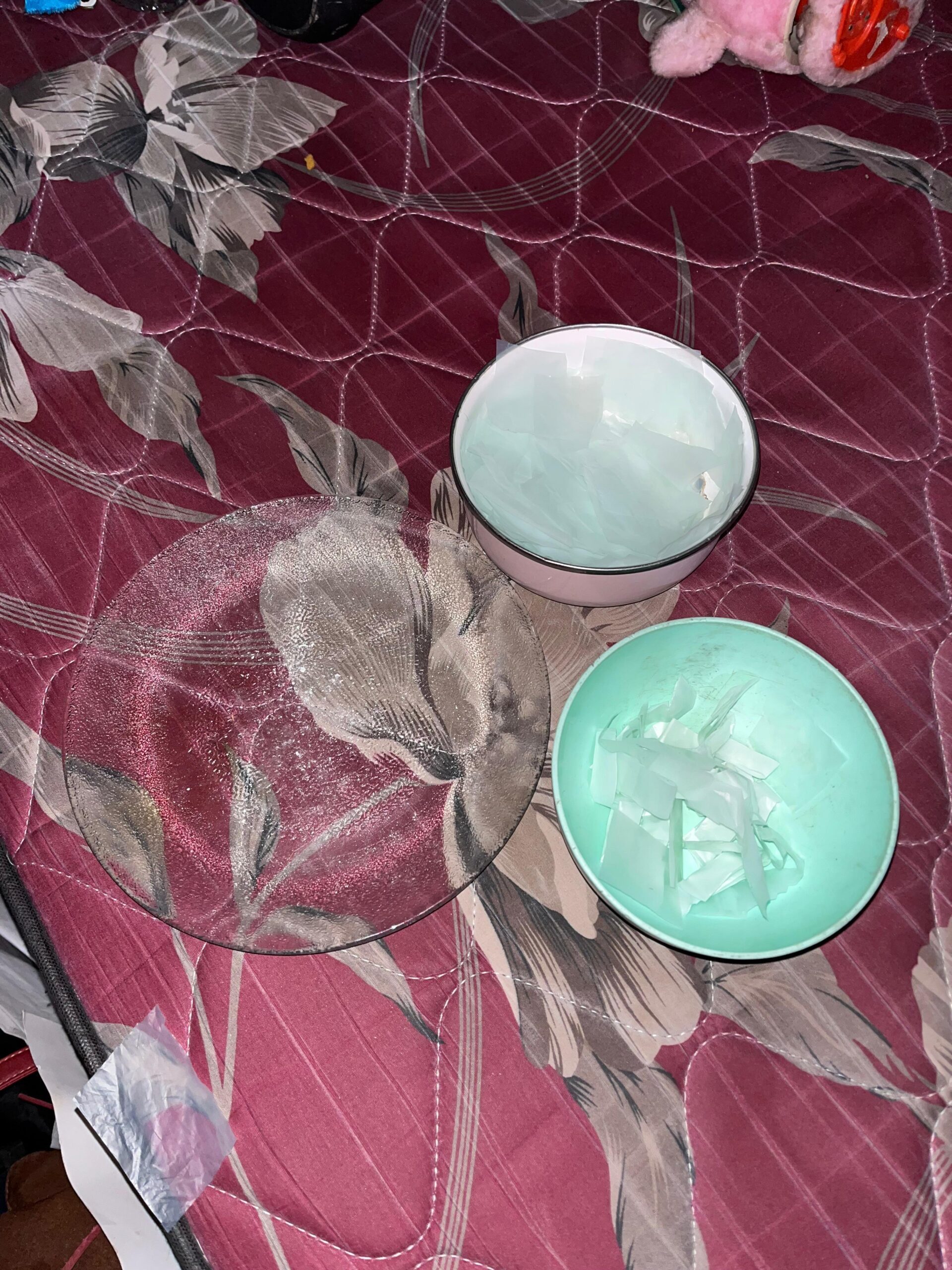 Gran cantidad de recortes de polietileno, utilizados habitualmente para el fraccionamiento de droga.