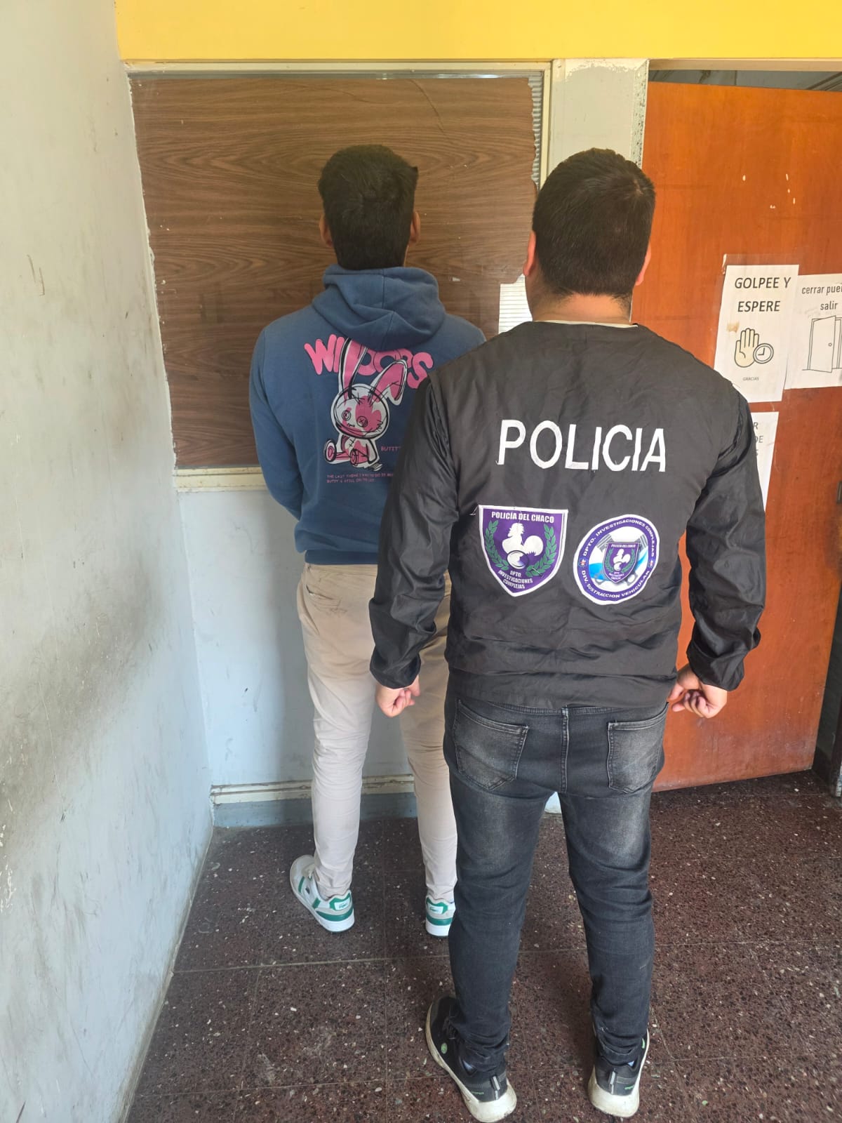 En el lugar fue aprehendido Santiago Samuel Caballero, de 20 años, domiciliado en Av. Gaboto 1700 de Barranqueras. Durante el procedimiento se constató que pesaba sobre él un pedido de detención vigente, vinculado a una causa por abuso de arma (Expediente N°16692/2025-1), con intervención de la Fiscalía de Investigación Penal N°10, a cargo de la doctora Lilian Beatriz Irala.