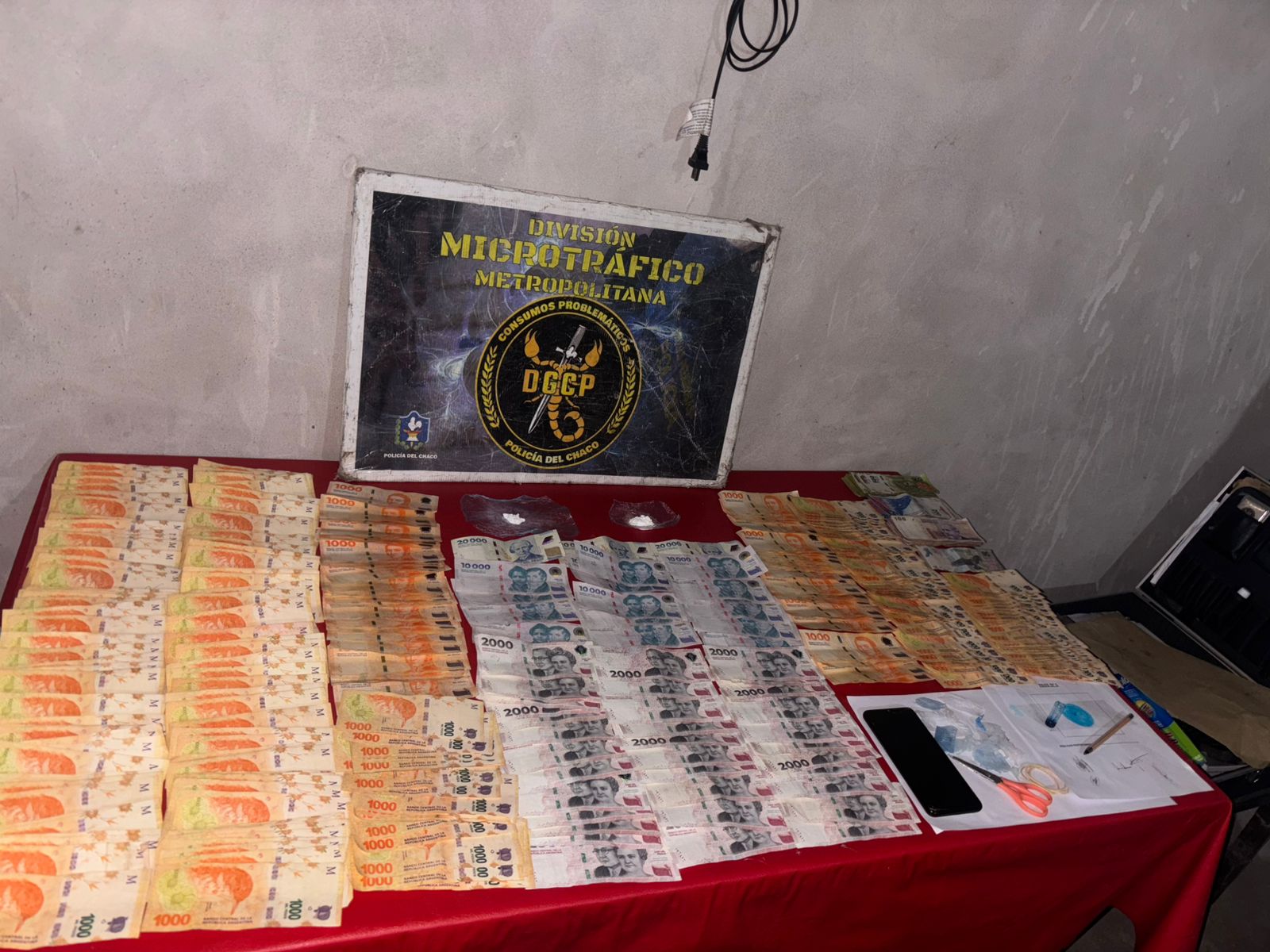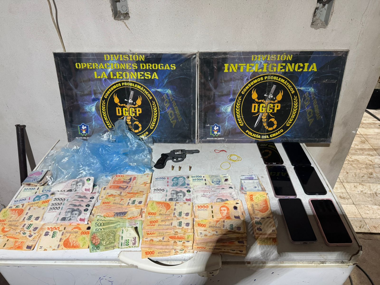Por otra parte, en un domicilio del barrio Margarita, en La Leonesa, fue aprehendido Luis Alfredo Aguilar, de 34 años, allí se incautaron 94 gramos de cocaína distribuidos en distintos envoltorios, 2 gramos de marihuana, dos balanzas de precisión con restos de sustancia, una importante cantidad de bolsas de polietileno, una tijera, $273.320 en efectivo y dos teléfonos celulares.