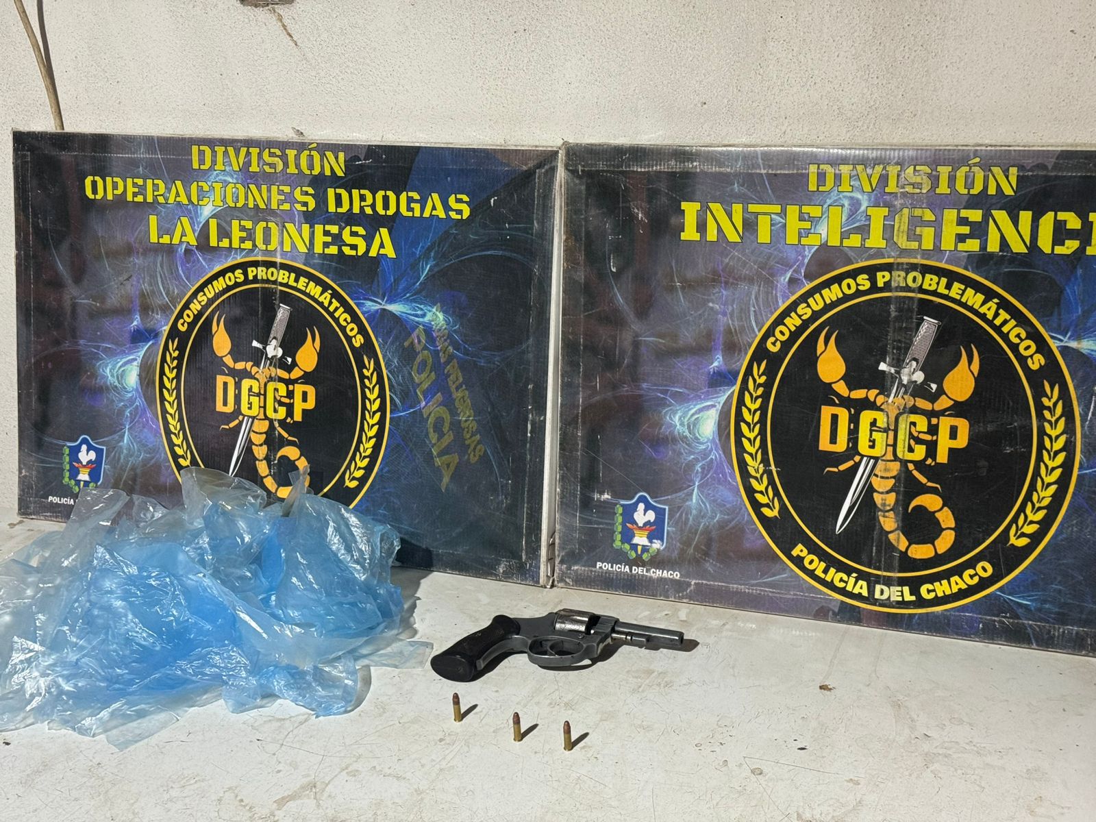 En un tercer procedimiento, realizado en una vivienda del barrio Belgrano de La Leonesa, se notificó a Valeria Paola Ríos, de 36 años, por infracción al artículo 189° bis del Código Penal, tras el secuestro de un revólver calibre .22 marca Galand con tres cartuchos.