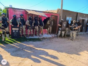 Si bien en la mayoría de los inmuebles no se registraron secuestros, el operativo arrojó resultados positivos en un domicilio ubicado en el barrio MTD, sobre pasaje San Martín, donde se produjo el secuestro impostergable de estupefacientes, dinero y elementos vinculados al narcomenudeo.