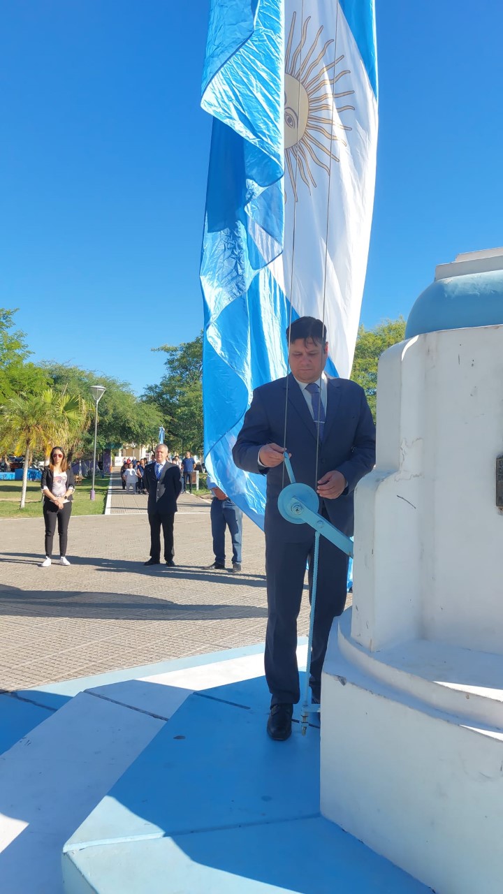 El intendente de la ciudad Ariel Lovey agradeció el acompañamiento de funcionarios, vecinos e instituciones en el acto central que se llevó a cabo en la Plaza Central.