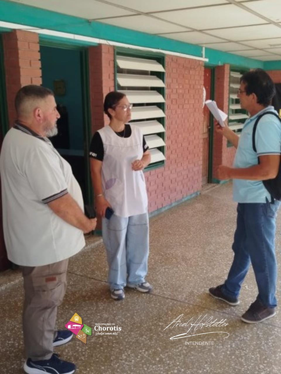 En ese marco, se recibió la visita del personal de infraestructura del Ministerio de Educación, junto a José Morínigo y el profesor Sergio Astarloa, representante del Colegio Técnico E.E.T. N° 49, quienes participaron de las tareas de evaluación y planificación.