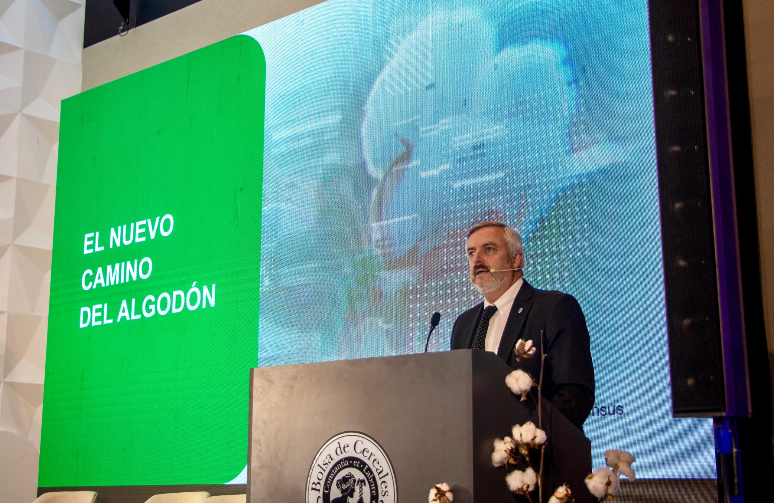 El gobernador Leandro Zdero, junto al ministro de Producción y el Desarrollo Económico Sostenible, Oscar Dudik, acompañaron este jueves en la Bolsa de Cereales de Buenos Aires el lanzamiento de “El nuevo camino del algodón”, en el marco de la presentación del primer algodón con tres eventos Biotecnológicos, que tiene proyección comercial y permitirá bajar la utilización de agroquímicos, como así también brindar más protección frente a insectos y malezas.
