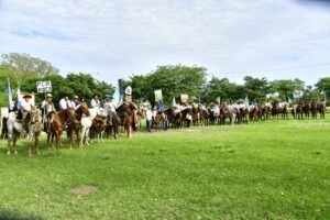 Más de sesenta jinetes, provenientes de distintas agrupaciones gauchas del norte chaqueño, realizaron su solemne marcha desde la Virgen, ofreciendo un ingreso imponente que emocionó al público presente. El momento estuvo marcado por el respeto, la destreza y el espíritu gaucho que caracteriza al festival.