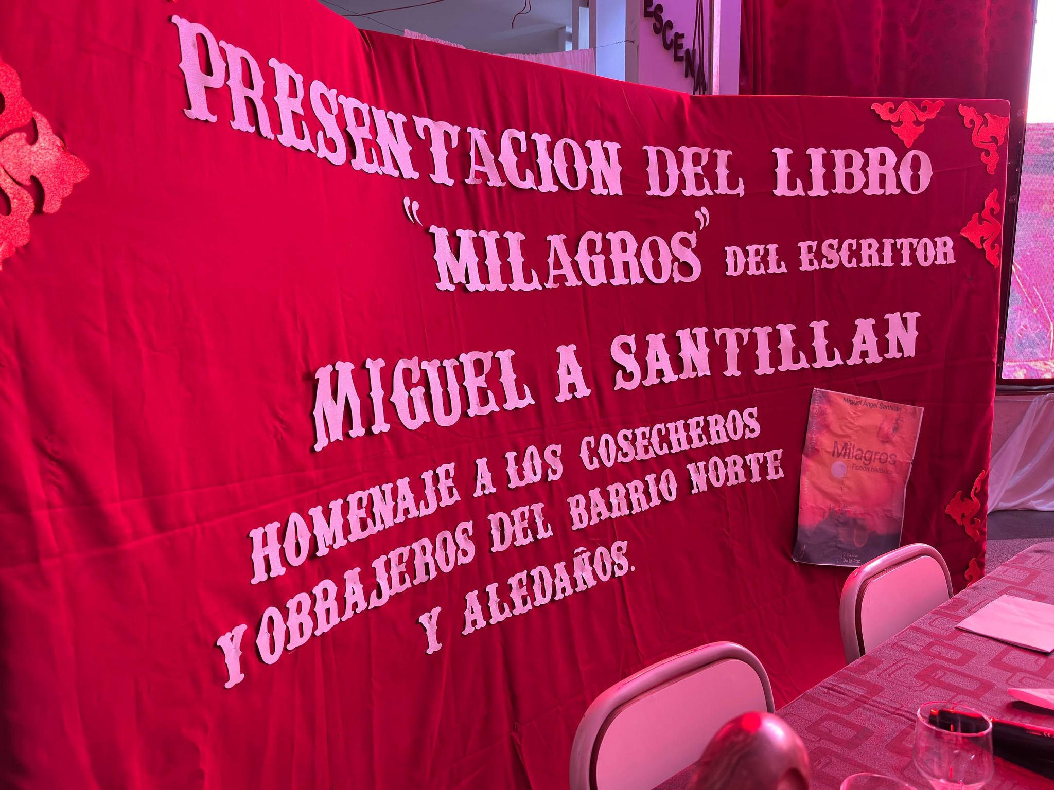 En el marco de las actividades por el 111° aniversario de Charata, la comunidad vivió anoche un emotivo encuentro cultural con la presentación del libro “Milagros, Ficción Histórica”, del escritor charatense Miguel Ángel Santillán. El evento se desarrolló en la Escuela N° 32 y reunió al intendente Rubén Rach, concejales, funcionarios municipales, referentes culturales y vecinos que se acercaron para acompañar al autor en este homenaje a la identidad local.