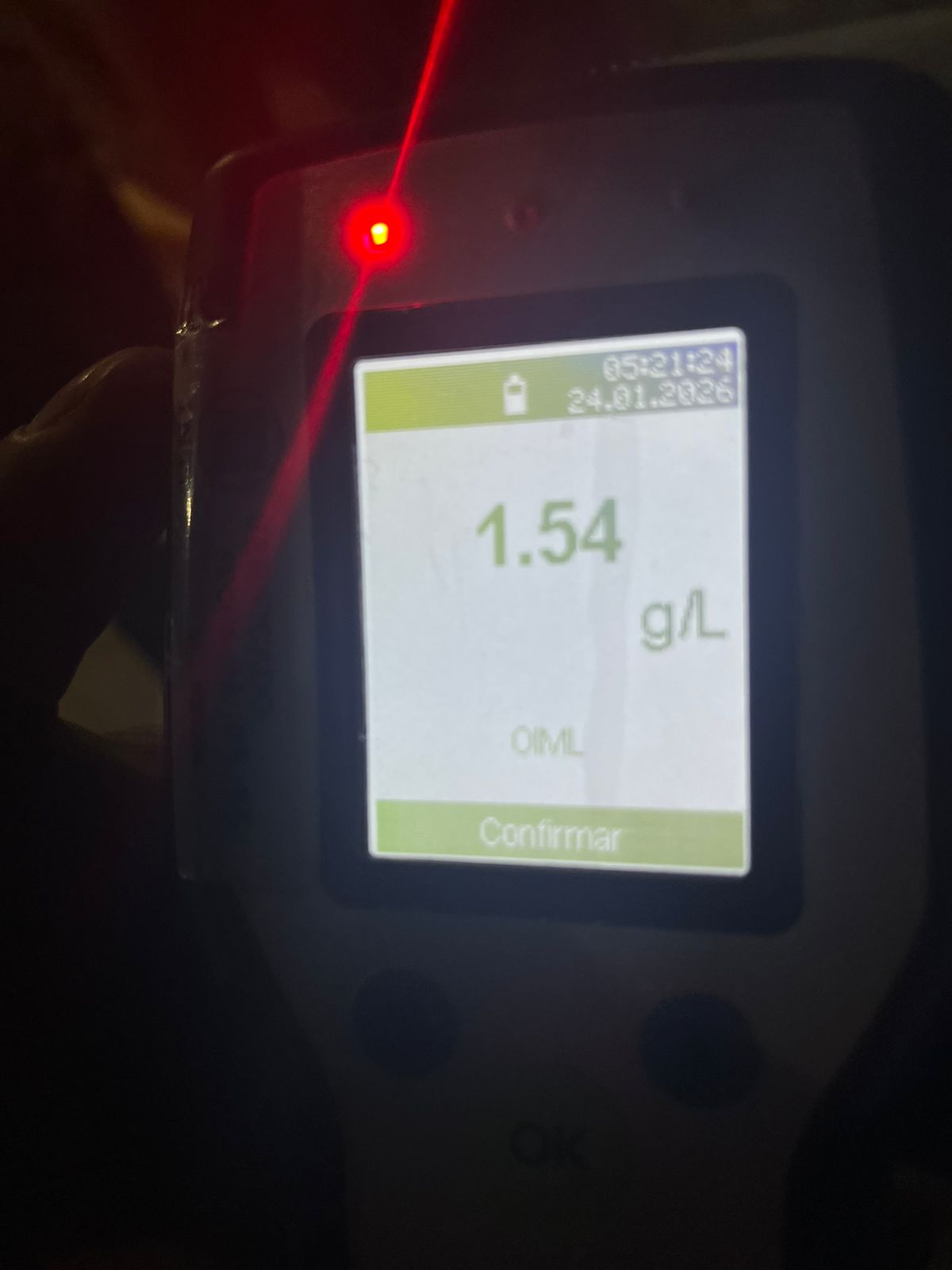 Posteriormente, personal de la División Tránsito Urbano y Patrulla Vial Charata realizó el test de alcoholemia a la conductora de la camioneta, el cual arrojó un resultado positivo de 1,54 gramos de alcohol por litro de sangre, superando ampliamente el límite permitido.