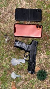 Durante el control preventivo, los uniformados hallaron en poder del mayor una réplica de arma de fuego tipo 9 mm y dos envoltorios de polietileno, uno con sustancia blanquecina fraccionada en pequeños paquetes y otro con materia vegetal verde amarronada.