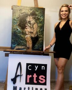 Lejos del bullicio, Cynthia prefiere pintar en soledad. “Es mi cueva, mi lugar. No me gusta hacerlo en público, prefiero que me vean al lado de la obra ya terminada. Pintar es un momento íntimo, de introspección”. La música suele acompañar ese proceso, sobre todo en las noches: “En la pandemia lo disfruté mucho. El silencio, la magia de la noche… pintaba hasta tarde”.