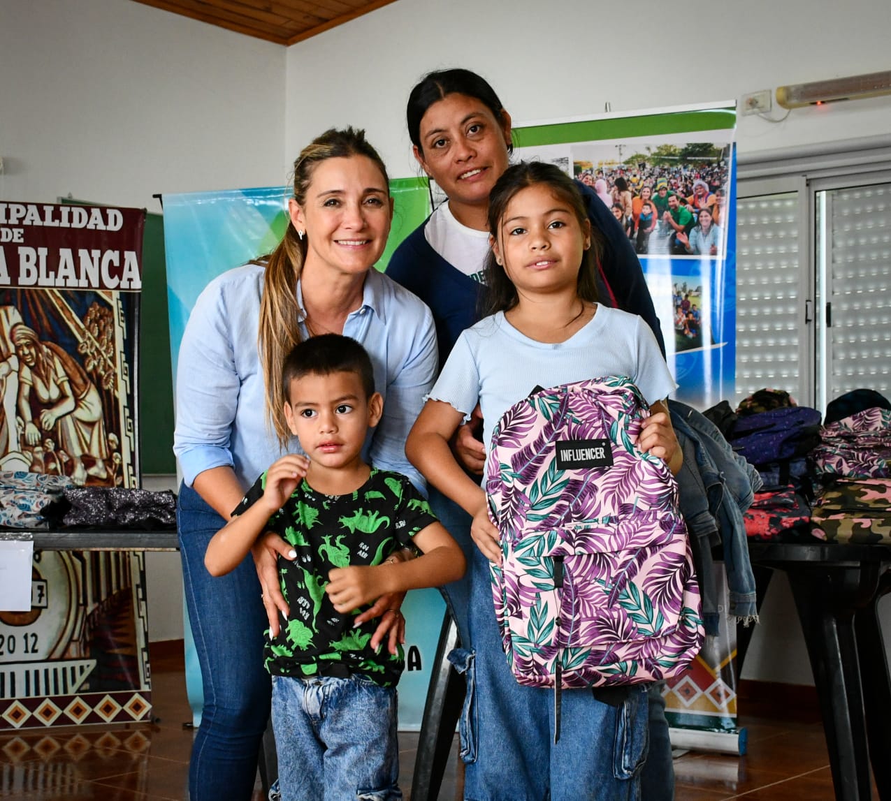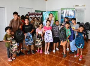 En la jornada se distribuyeron 300 mochilas completas con útiles escolares destinadas a alumnos del nivel primario, quienes comenzarán las clases el próximo lunes.