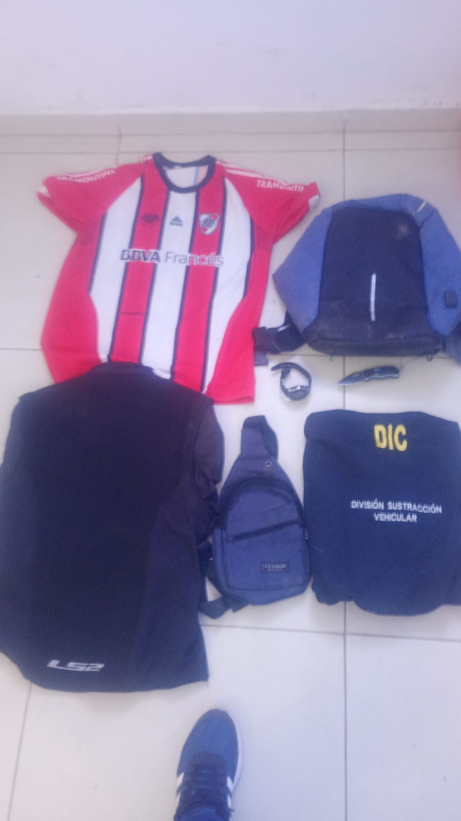 Tras reducirlos, comenzó a cargar en una mochila y un morral distintos objetos de valor: una notebook Lenovo G480, dos celulares Motorola, relojes, ropa y hasta una camiseta de River Plate. Antes de escapar, se vistió con prendas de la víctima —campera, pantalón y zapatillas— y se dio a la fuga a bordo de la motocicleta familiar, una Guerrero G110 Trip, dominio A120XKC.