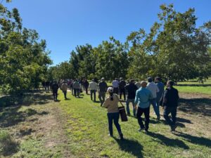 Los anfitriones fueron Carlos Villalba, su esposa Patricia Abdón y familia, empresarios que, a pesar de no tener antecedentes en el ámbito agropecuario, hoy se posicionan como referentes del cultivo de nuez pecán en la zona.“Ninguno viene del palo de la producción agropecuaria. Hemos cometido enormes errores, pero esto es un emprendimiento que llevá sus tiempos. Seguimos adelante, aprendiendo, creciendo y apostando por algo nuevo, por un producto regional nuevo”, compartió Villalba con emoción durante el recorrido por su campo.