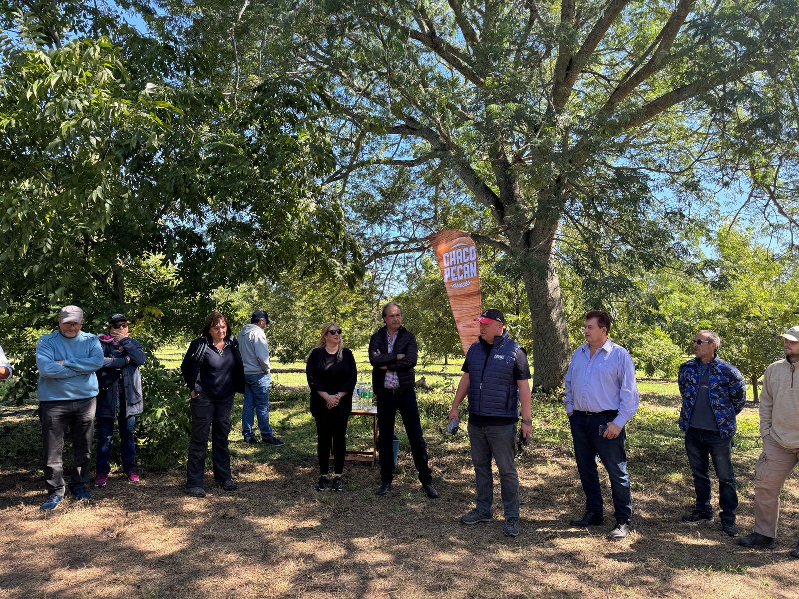 La jornada fue posible gracias a la articulación de Chaco Pecán, que contó con la destacada presencia de autoridades de la Cámara Argentina de Productores de Pecán (CAPP), entre ellos su director Facundo Tejerina y el vicepresidente Gustavo Simonutti, junto a integrantes del área de asesoramiento técnico, quienes brindaron valiosa información a los presentes sobre prácticas agrícolas, manejo del cultivo,