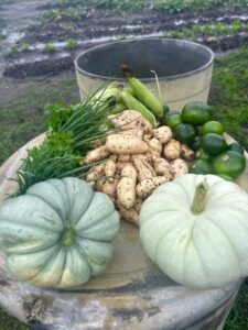 Las verduras provienen de la huerta municipal, gestionada por Luis Galarza junto a un grupo de trabajadores, donde se cultivan distintas variedades destinadas al abastecimiento de comedores escolares e instituciones. Además, desde el municipio se promueve que cada familia pueda contar con su propia huerta, para lo cual se brindan capacitaciones y entrega de semillas.
