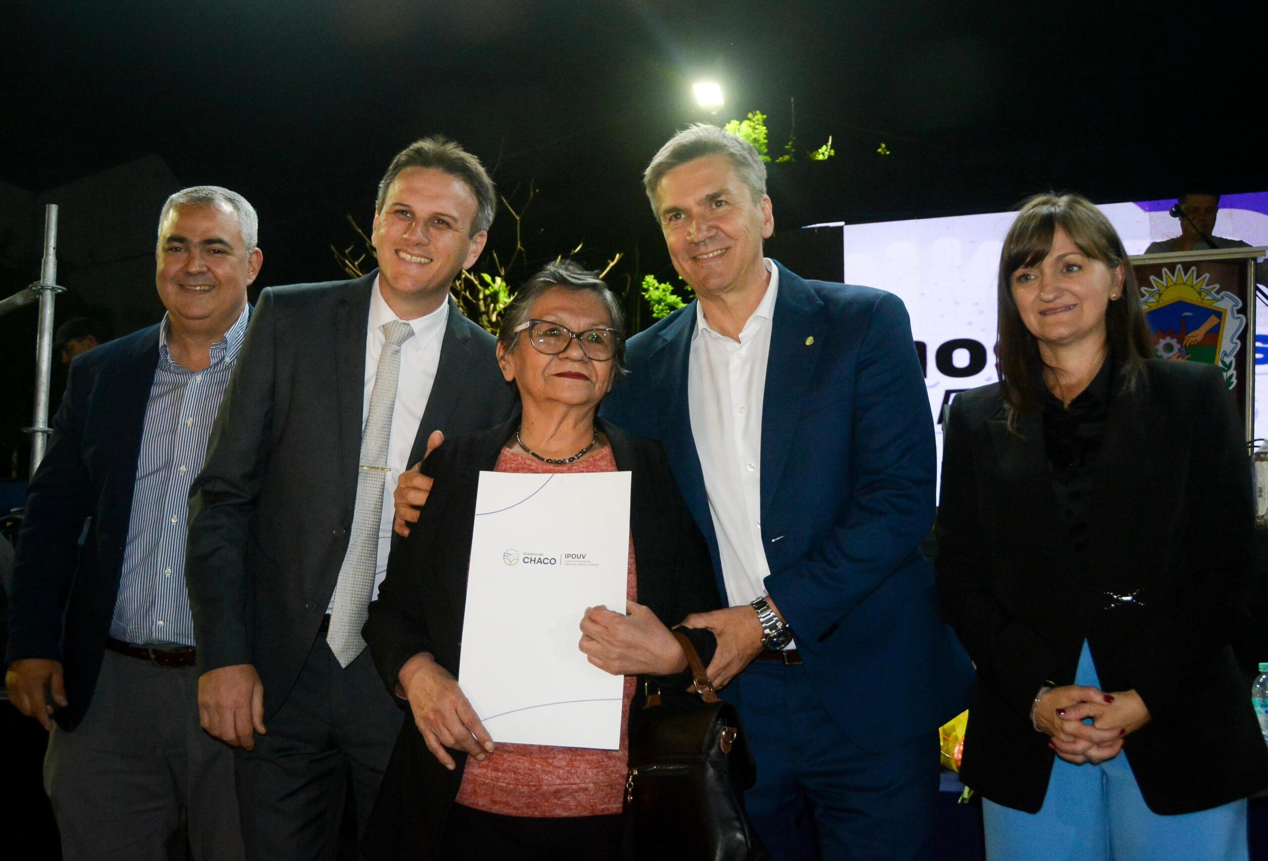 Durante el acto, el Gobierno provincial, a través del Instituto Provincial de Desarrollo Urbano y de Vivienda (Ipduv), entregó títulos a familias que, en algunos casos, esperaron por más de 40 años su propiedad, consolidando así su derecho legal sobre los terrenos que habitan y avanzando en la regularización dominial de la ciudad.