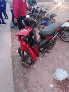 A hora 19:30, de este domingo 3 de Julio, personal policial tomó conocimiento que en calle 33, entrada aeropuerto de la ciudad, había ocurrido un siniestro Vial, arribados constataron que uno de los partícipes sería una motocicleta 110 cc. marca Gilera modelo Smash, color rojo, conducida por un menor de 17 años, acompañado de otra menor de 15 años, quienes resultaron con lesiones siendo trasladados hacia Hospital 4 de Junio.