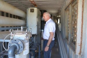“La otra planta, ubicada en el barrio Sur, perteneciente al municipio, cuenta con una capacidad aproximada de 12m3/h. La misma se encontraba parada debido a que se debía cambiar la bomba centrífuga que distribuye agua a la red. También se mejoró la presión de distribución de agua potable a la Planta de Ósmosis Inversa ubicada en barrio Norte al colocar una bomba de mayor volumen”, detalló el vocal de Sameep.