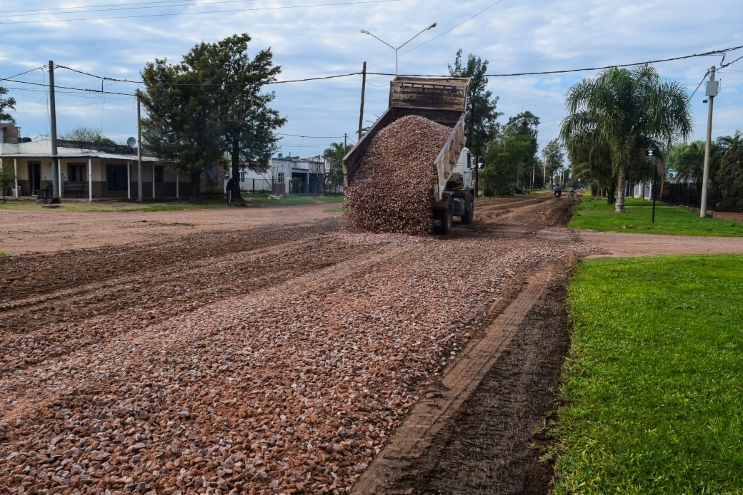 La intervención comenzó con el levantamiento del terreno, para luego proceder al enripiado, un proceso que permite nivelar la superficie y mejorar el escurrimiento del agua. Desde el Municipio indicaron que esta etapa es clave para garantizar una mayor durabilidad del trabajo y evitar baches o acumulaciones de barro.