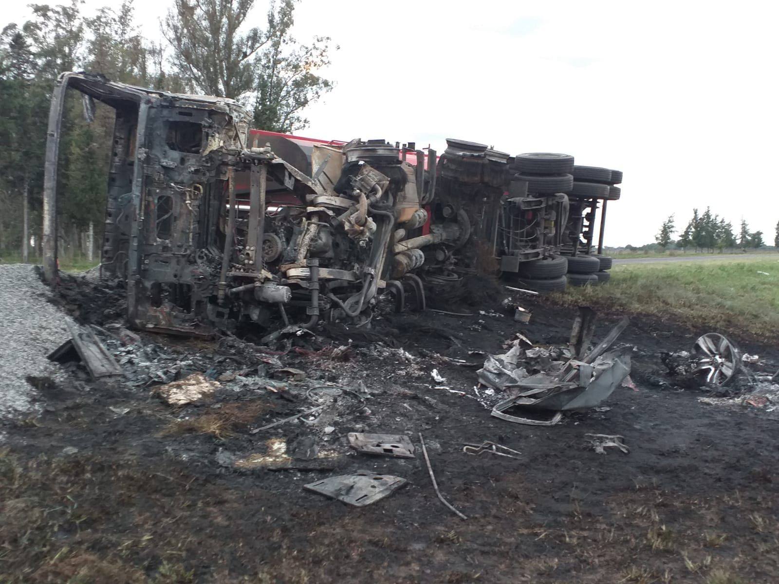 Una camioneta y un camión chocaron de manera frontal y ambos vehículos se terminaron prendiendo fuego. El saldo del siniestro fue el fallecimiento del conductor del rodado de menor porte.