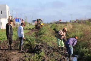 Personal municipal llevó adelante un recorrido por aquellos puntos donde aún había espacios cubiertoS de agua, ejecutando un trabajo de zanjeo y retiro de todo tipo de elementos que puedan taponar los mismos.
