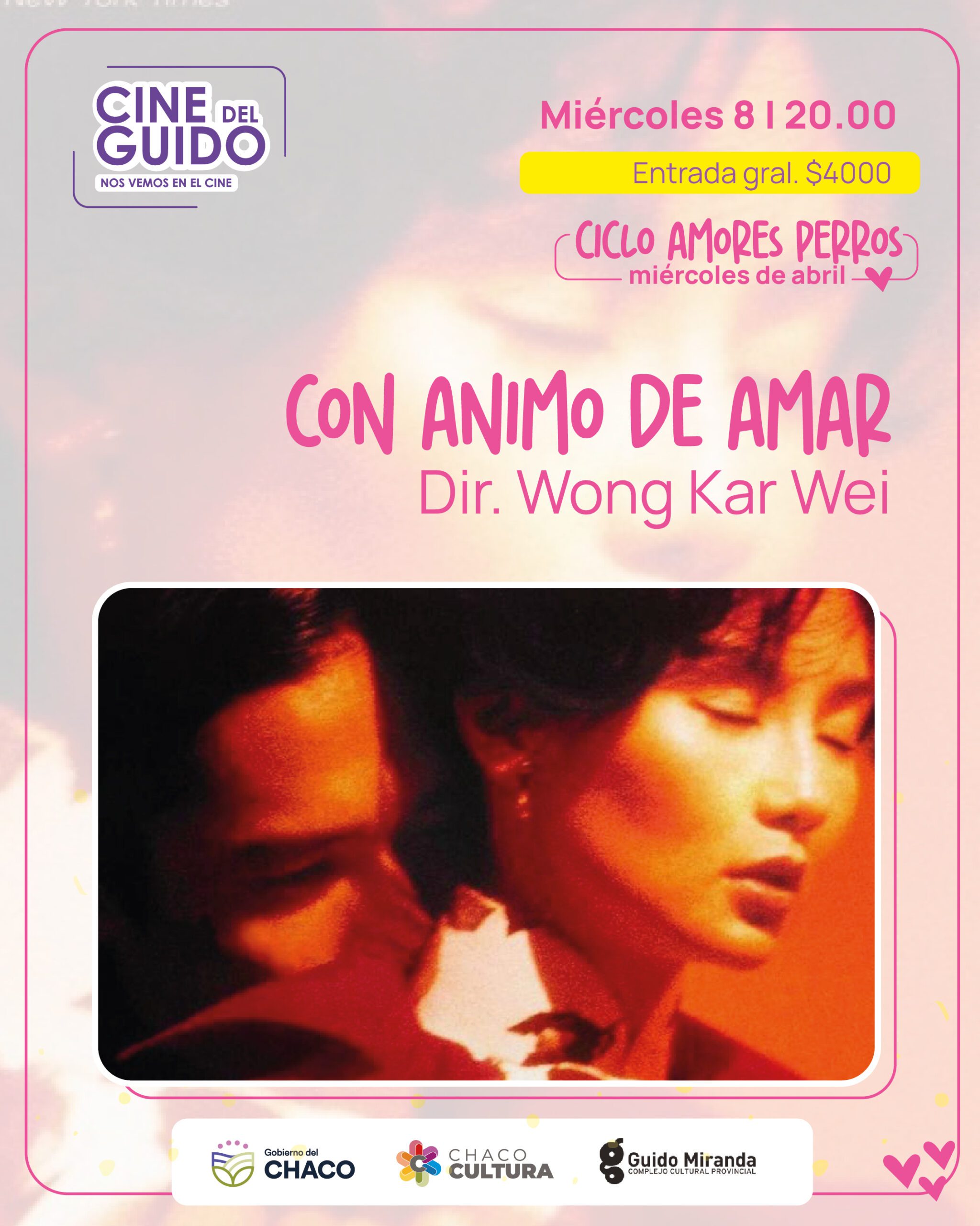 El miércoles 8 de abril, a las 20, el Ciclo Amores Perros invita a compartir Con ánimo de amar del referente del cine asiático contemporáneo Wong Kar-Wai.