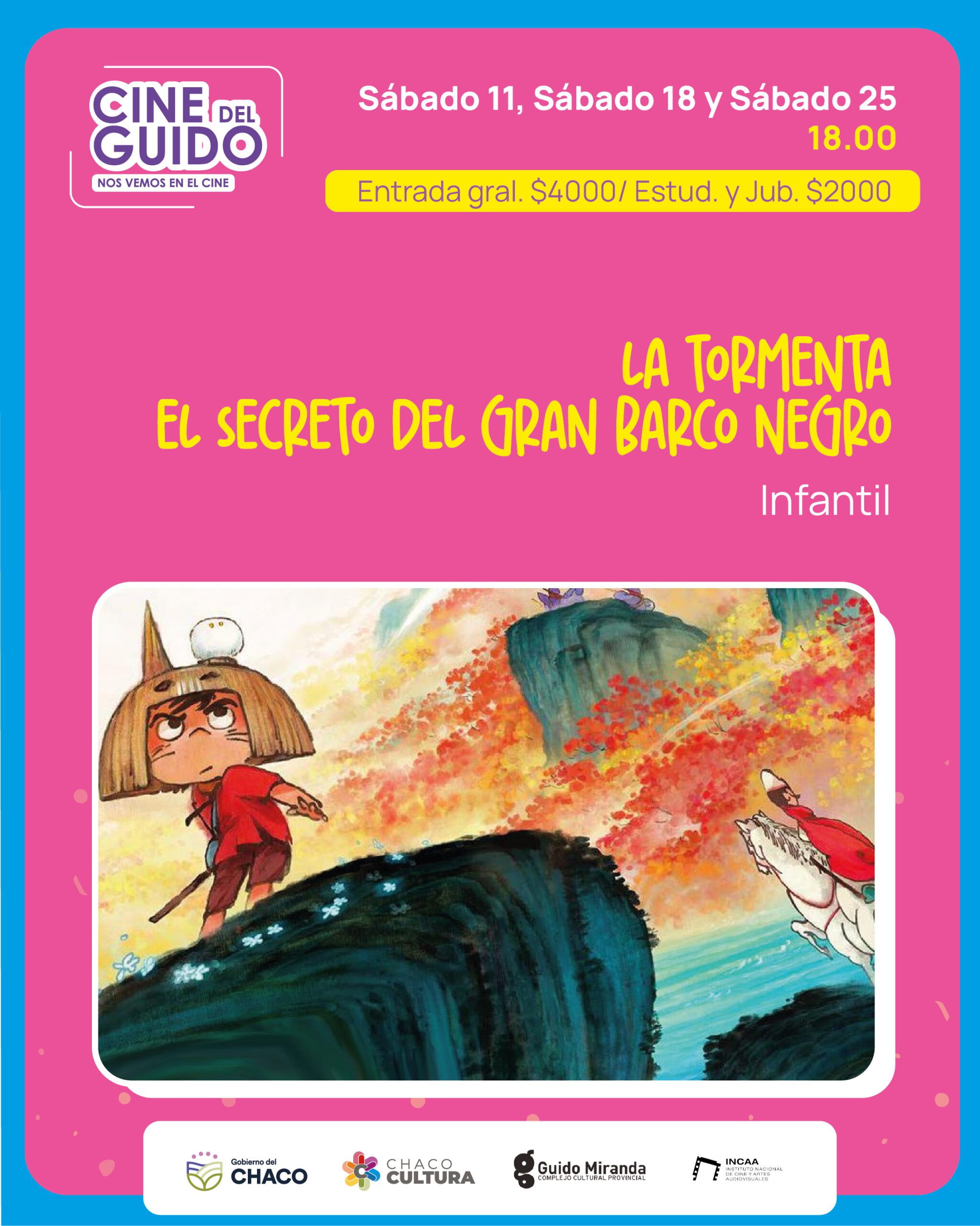 También el sábado 11, pero a las 18, se proyectará «La tormenta: el secreto del gran barco negro», una aventura ideal para disfrutar en familia.