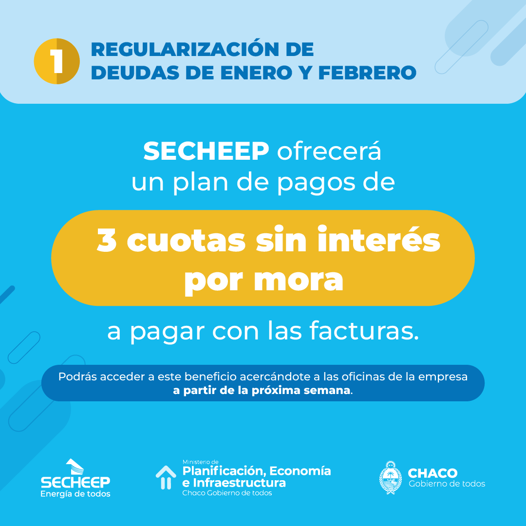 Desde Secheep aclararon que todos los usuarios están en condiciones de acceder a esas medidas y gestionar en sus oficinas sus deudas para no perder el servicio.