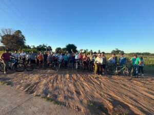 El intendente de Quitilipi, Ariel Lovey, participó junto a vecinos de El Palmar de una bicicleteada organizada para visibilizar el reclamo por el asfaltado del acceso que conecta la localidad con la ruta 45.
