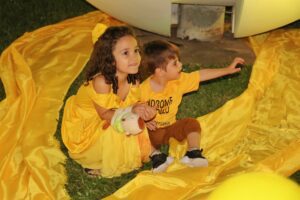 En el espacio verde, al ingreso del Domo del Centenario se llevó a cabo un breve acto y se iluminó de amarillo una de las esculturas que forman parte del patrimonio de la Ciudad, para generar conciencia y acompañar la lucha de las personas que padecen, tienen familiares o allegados con enfermedades poco frecuentes como el Síndrome de Gould.