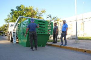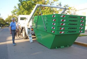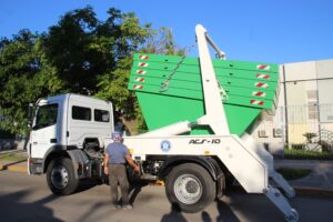 Néstor Dellamea, secretario de Servicios Públicos de la Municipalidad de Resistencia, informó: “El camión es capaz de trasladar hasta 10 contenedores a la vez para su distribución en los distintos puntos de la ciudad, pero luego los retira individualmente”.
