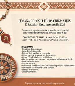La localidad de El Sauzalito, en pleno Impenetrable chaqueño, se alista para vivir una intensa agenda de actividades en el marco de la Semana de los Pueblos Originarios, con propuestas deportivas, culturales y artísticas para toda la comunidad.
