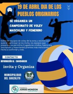 Los festejos comenzarán el viernes 17 de abril con un campeonato de fútbol y vóley, tanto en categoría femenina como masculina. La organización estará a cargo de referentes locales, entre ellos Héctor “Chiqui” Albornoz en fútbol, y Javi Ballena junto a Viviana Merino en vóley.