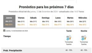 El Servicio Meterológico Nacional alerta por tormentas fuertes para la tarde noche de hoy y este viernes