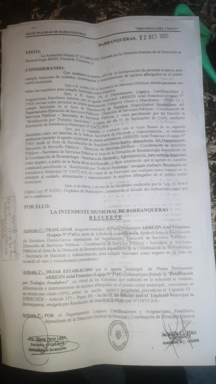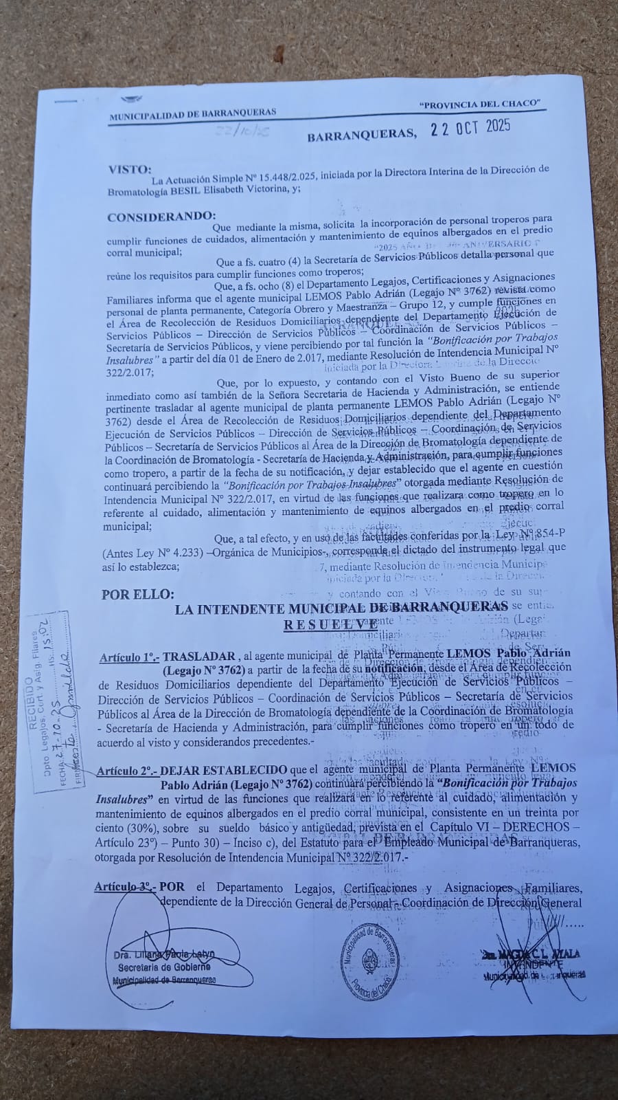 Los empleados afirmaron tener más de 15 años de antigüedad en la Municipalidad y aseguraron que la decisión del traslado no fue consultada ni cuenta con fundamento administrativo. Según señalaron, la medida se tomó luego de que algunos de ellos reclamaran públicamente por el pago de sueldos atrasados y participaran en reuniones políticas.