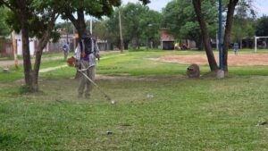 En ese marco, personal de la Municipalidad de Fontana llevó adelante trabajos de desmalezado en las plazas ubicadas en los barrios de las 263 y 125 viviendas. Las tareas incluyeron corte de pasto y limpieza de sectores verdes, con el objetivo de mantener estos espacios en buenas condiciones para el uso de los vecinos.
