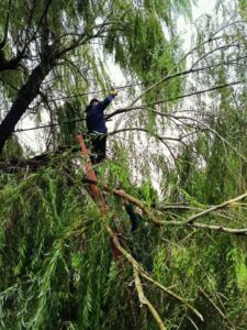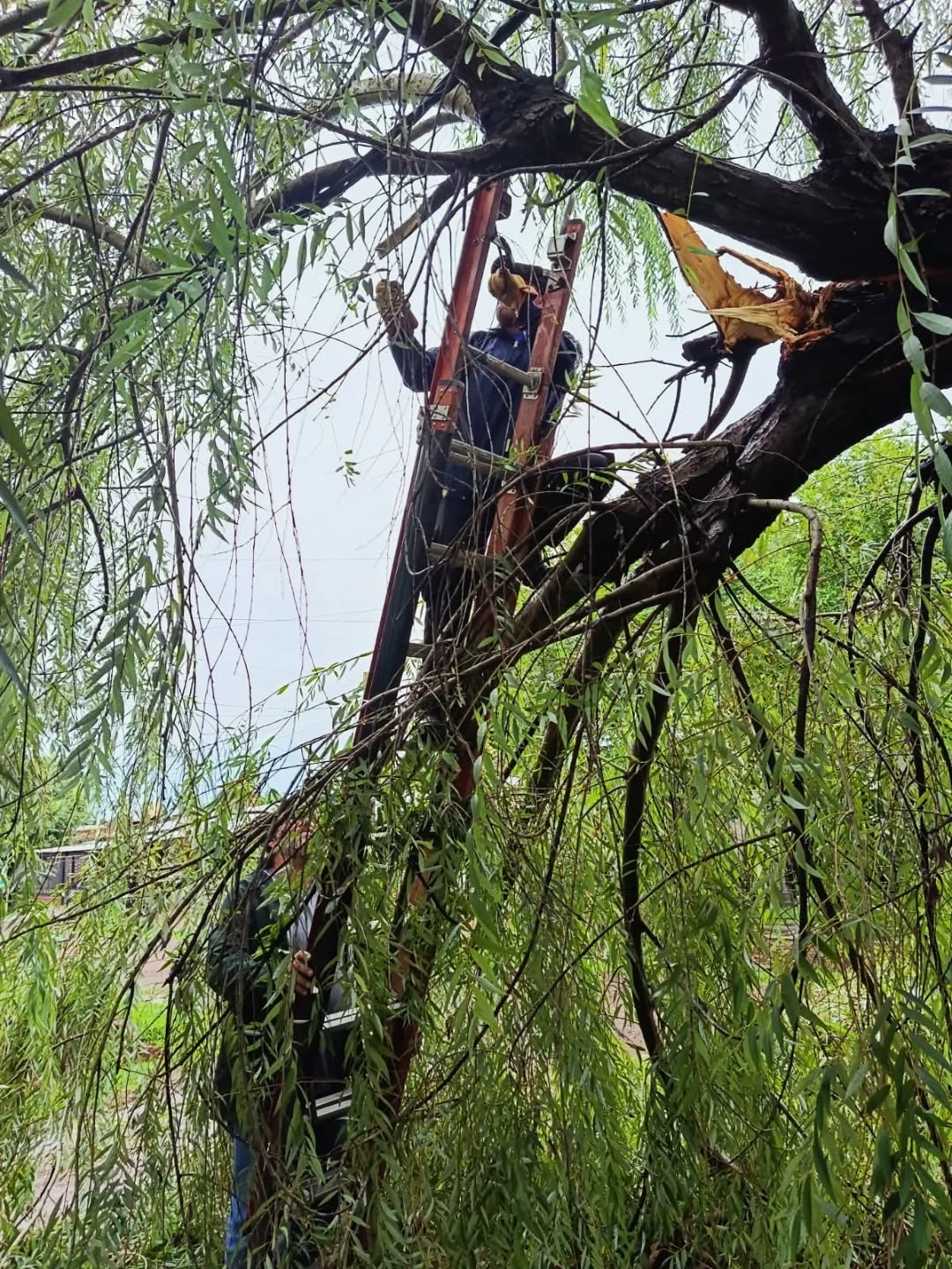 Las cuadrillas municipales recorren diferentes zonas atendiendo reclamos y realizando intervenciones para garantizar la seguridad de los vecinos, en un contexto donde las condiciones climáticas aún presentan dificultades.