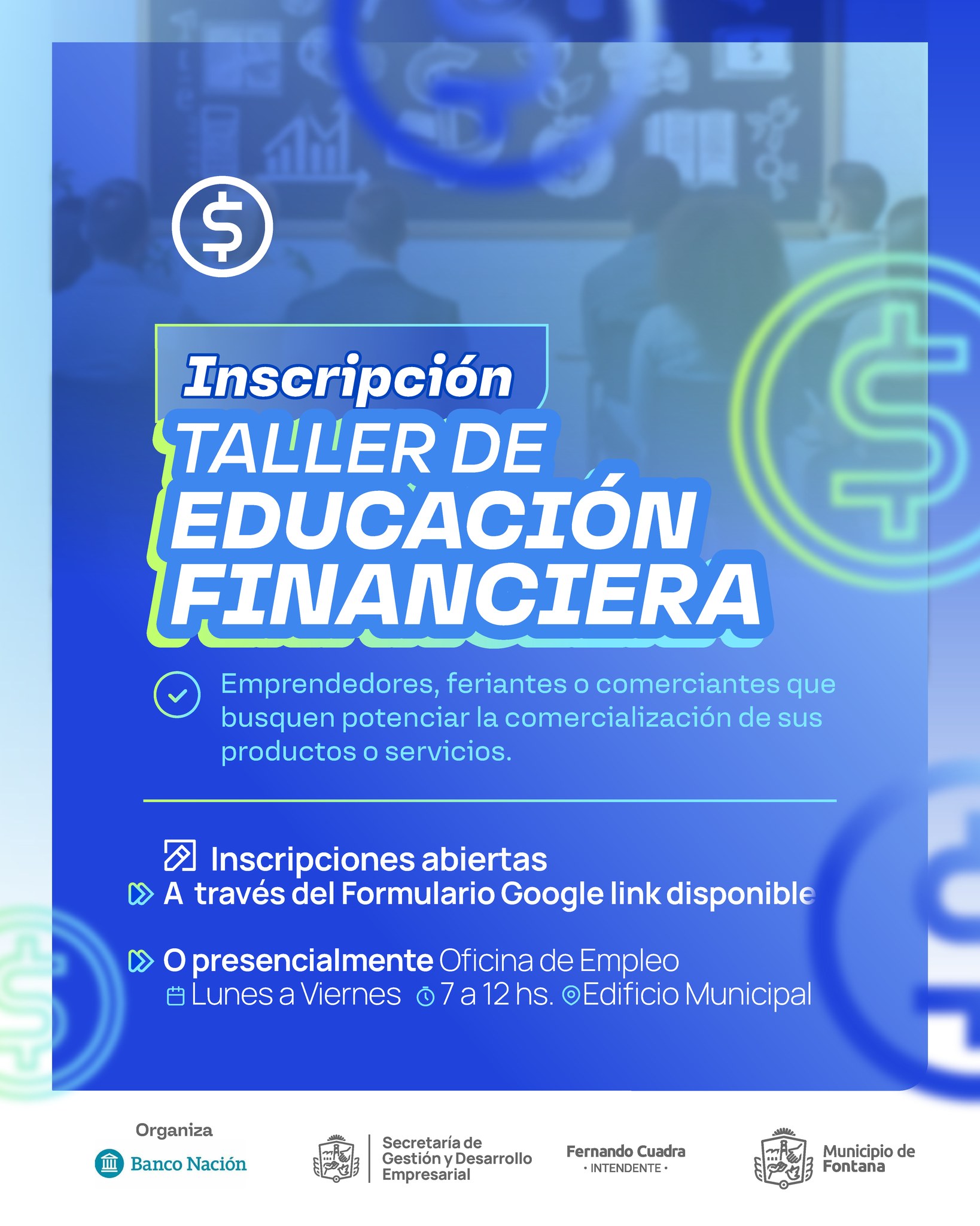La Municipalidad de Fontana, en articulación con el Banco Nación, lanzó la inscripción al Taller de Educación Financiera, una propuesta formativa gratuita destinada a emprendedores, feriantes y comerciantes de la ciudad.