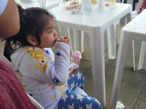 Durante el encuentro, los chicos compartieron una merienda inclusiva con jugos, sándwiches, helados, opciones sin gluten y regalos, en un ambiente colmado de diversión, afecto y contención.