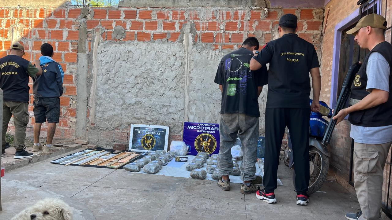 En un procedimiento realizado este domingo por la mañana, efectivos de la División Microtráfico Interior —dependiente del Departamento Antinarcóticos Interior de la Policía del Chaco— detuvieron a dos hombres y secuestraron casi 29 kilogramos de marihuana en cogollos, dinero en efectivo, un teléfono celular y una motocicleta.