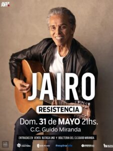 El domingo 31 de mayo a las 21, Jairo se presentará en el Complejo Cultural Guido Miranda del Instituto de Cultura de Chaco, para regalar un encuentro único con la música y la emoción.