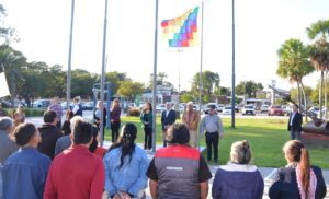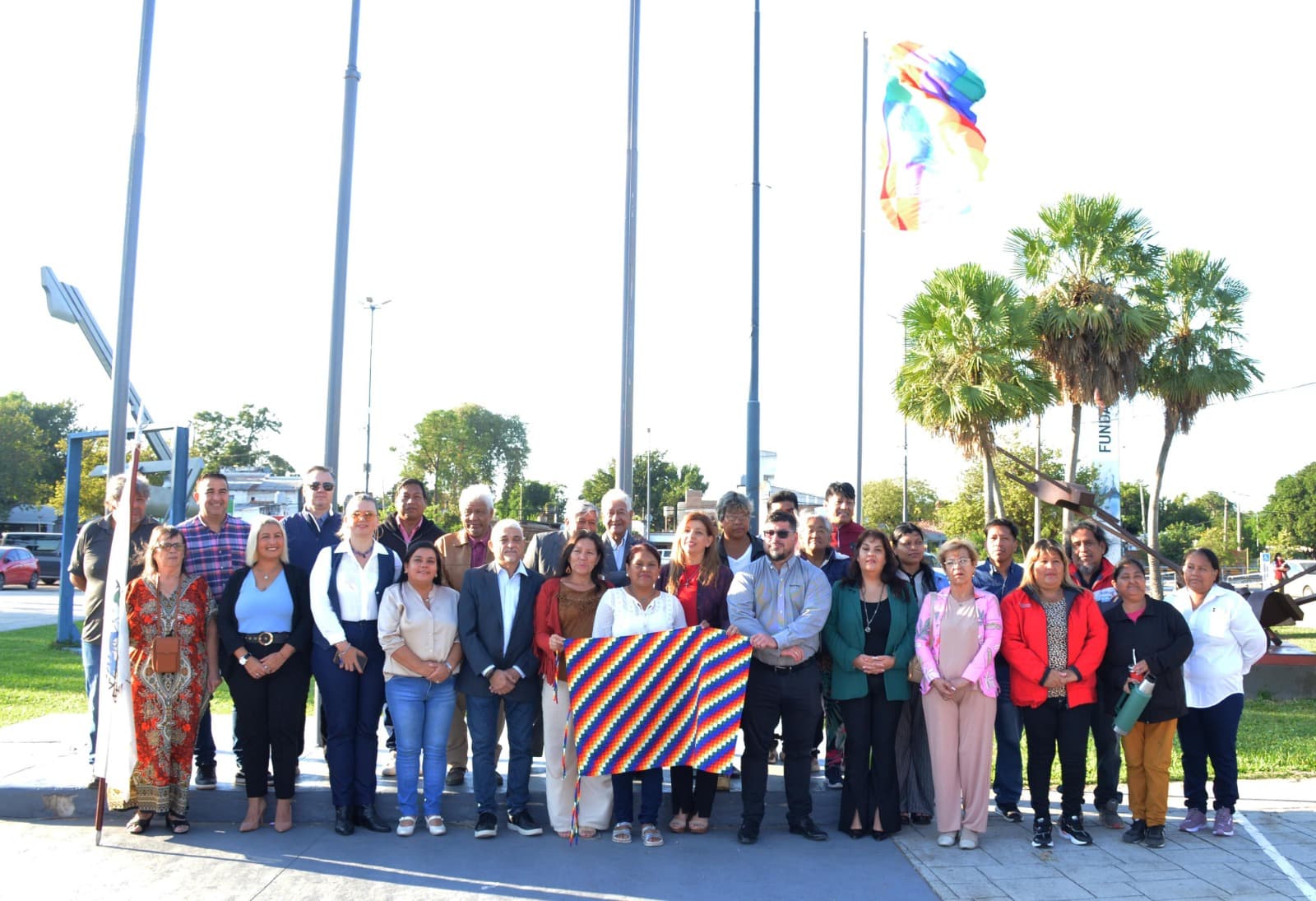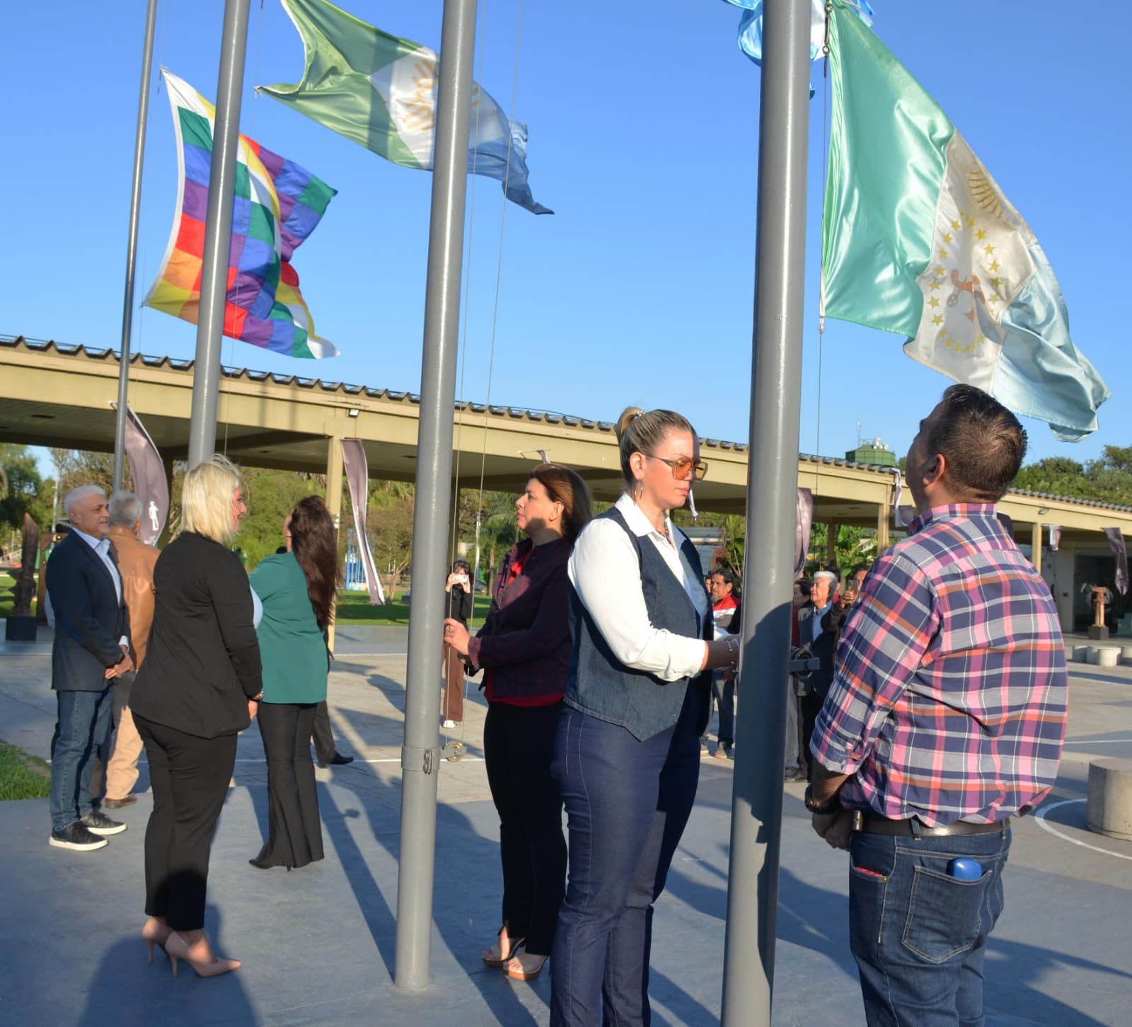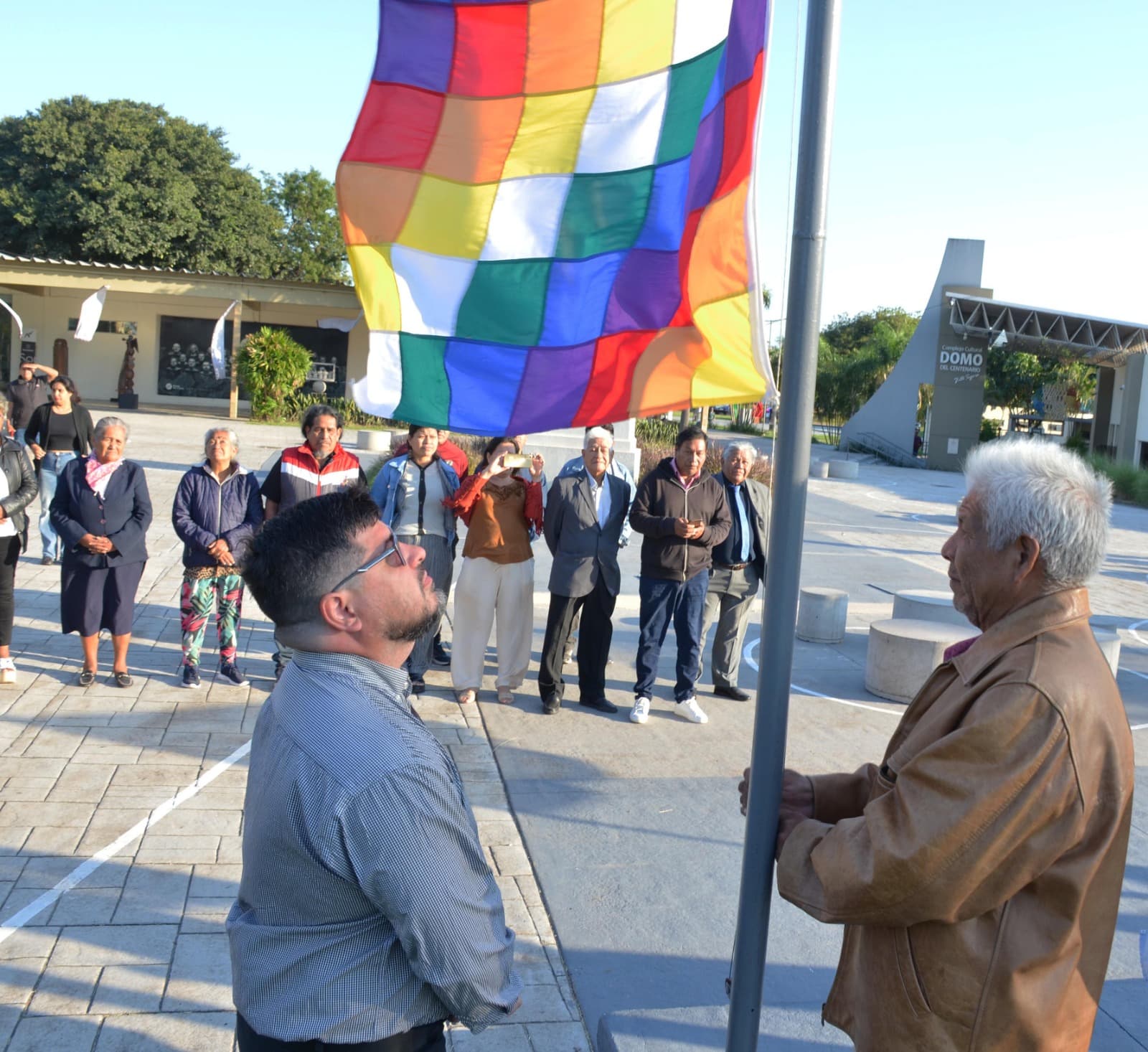 En el Día del Aborigen Americano, en el Playón del Domo del Centenario se llevó a cabo el acto central para conmemorar esta fecha con el izamiento de la Bandera Argentina y la wiphala.