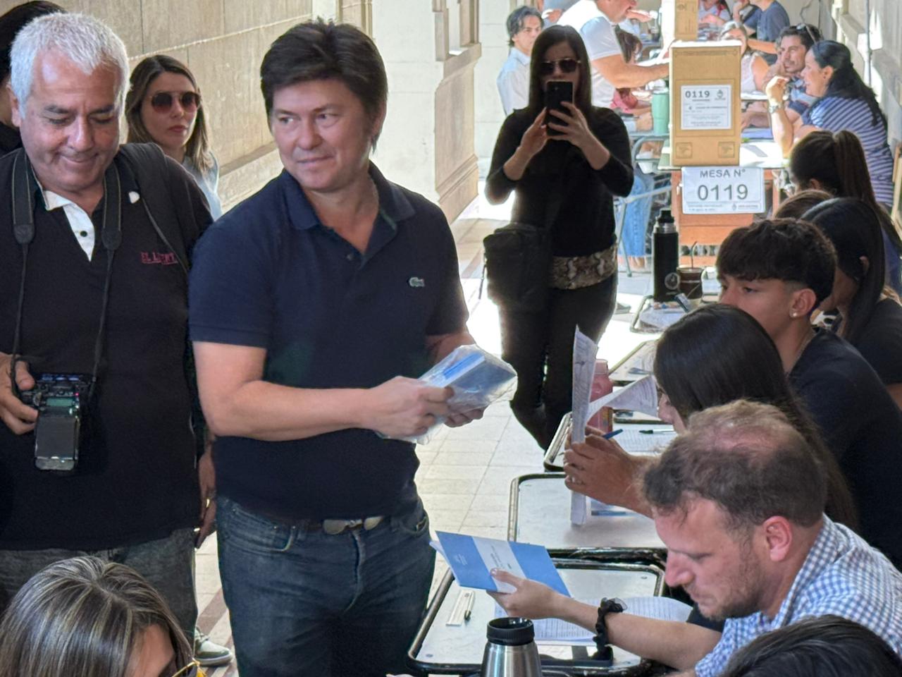 El candidato a gobernador por La Libertad Avanza, Lisandro Almirón emitió su voto en la Escuela Normal “Dr. Juan Pujol” acompañado por su familia. El momento estuvo marcado por una carga especial de emoción, ya que su hija Amparo, de 16 años, ejerció por primera vez su derecho al voto.