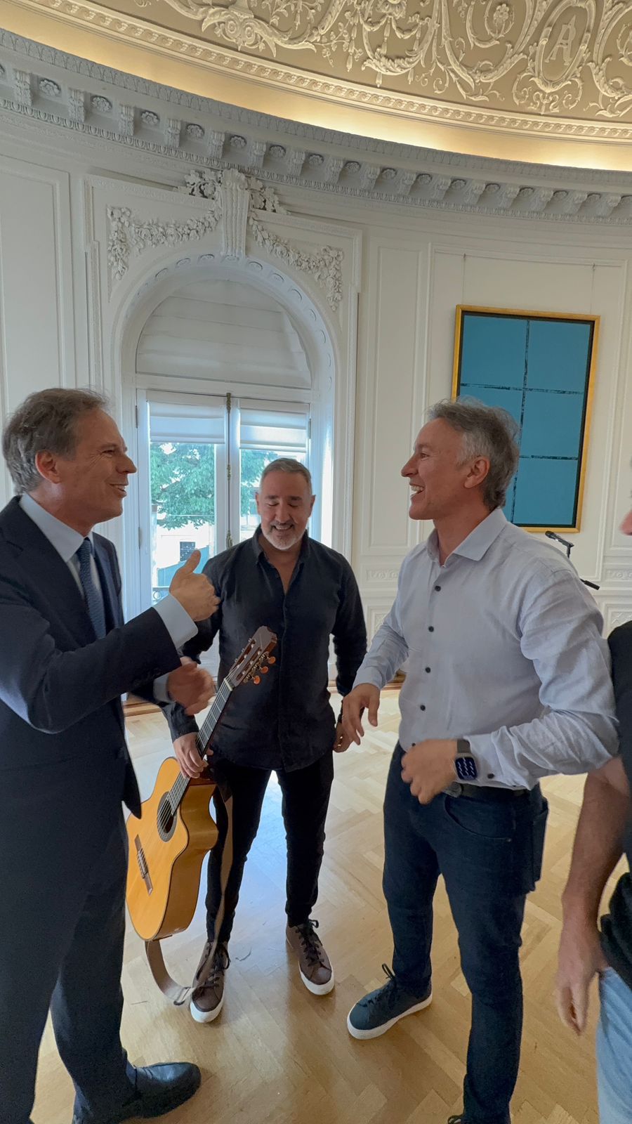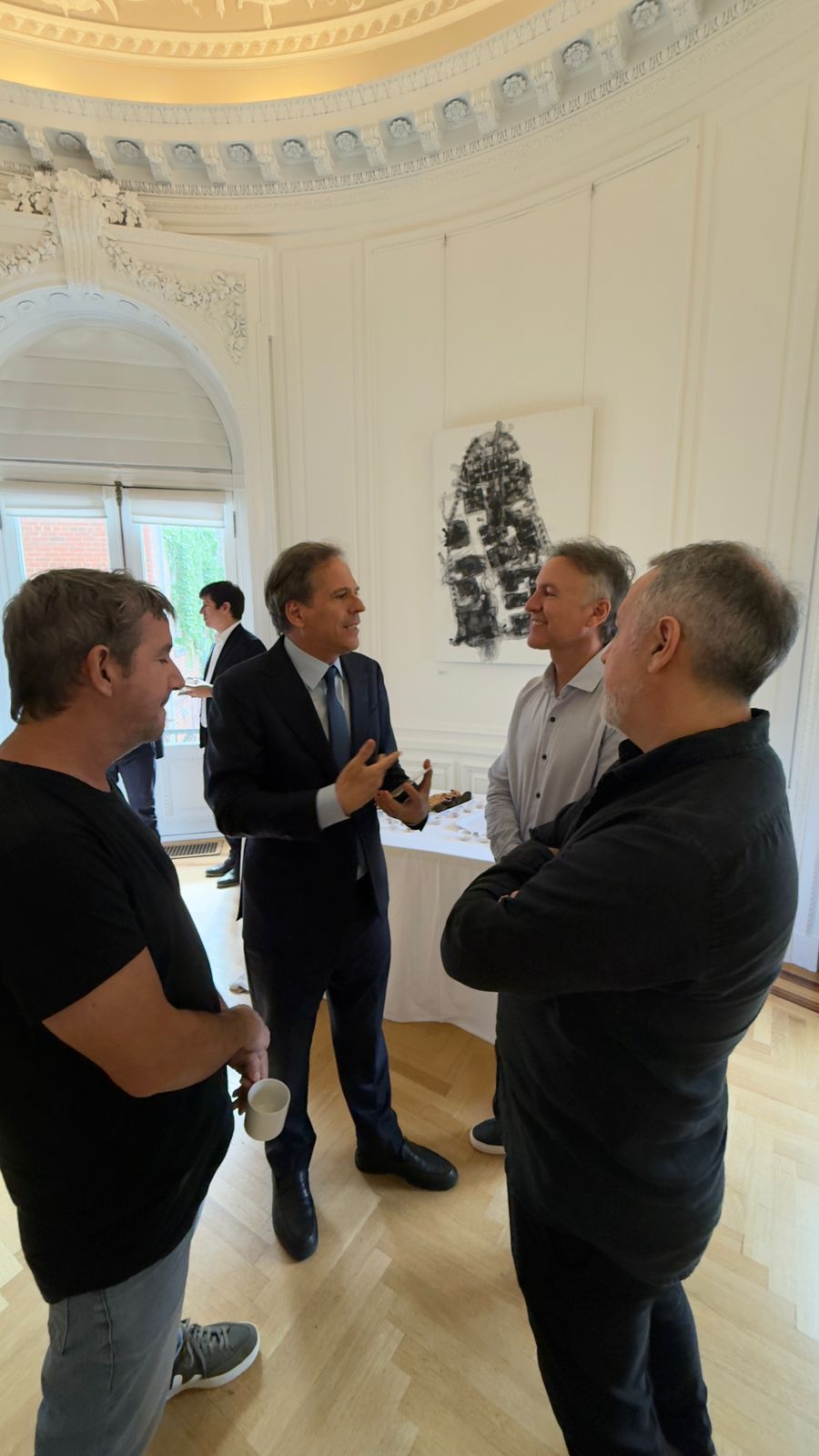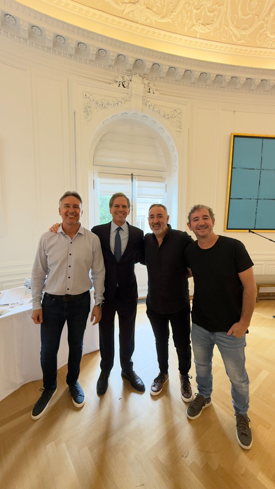 El embajador Alejandro Oxenford los invitó especialmente y los recibió personalmente en la sede diplomática, en un gesto de reconocimiento a su trayectoria y a su rol como referentes de la cultura popular argentina.